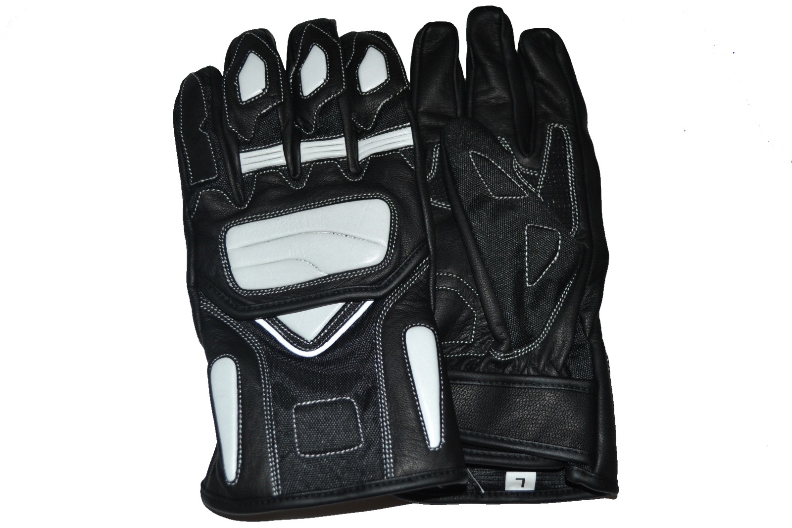 Mix of Goatskin leather and four-way cloth Velcro wrist closure Comfortable and well-fitting Steel shots sewn into each glove. Steel shots sewn in the knuckles, defense for riots